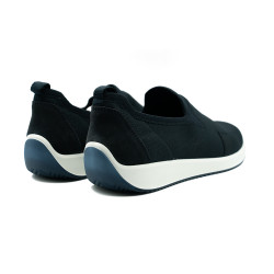 Mėlynos spalvos, moteriški sportiniai tekstiliniai bateliai.