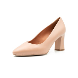 Smėlio spalvos, odiniai bateliai komfortiško - 8 cm. aukščio kulnu bei patogia bato lenktimi.
