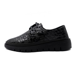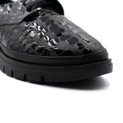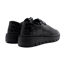 Juodos spalvos suvarstomi bateliai su lygiu padu.
