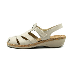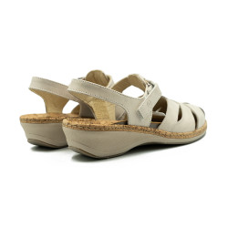 Išskirtinio dizaino moteriškos, smėlio spalvos basutės su 4 cm padu.