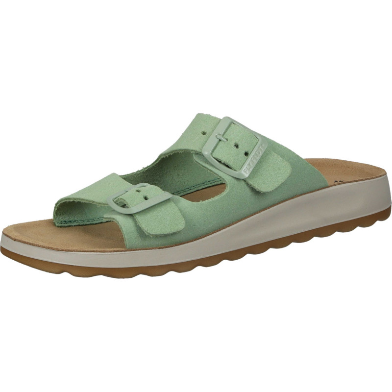 Modernaus dizaino žalios spalvos moteriškos odinės įspirtukės.