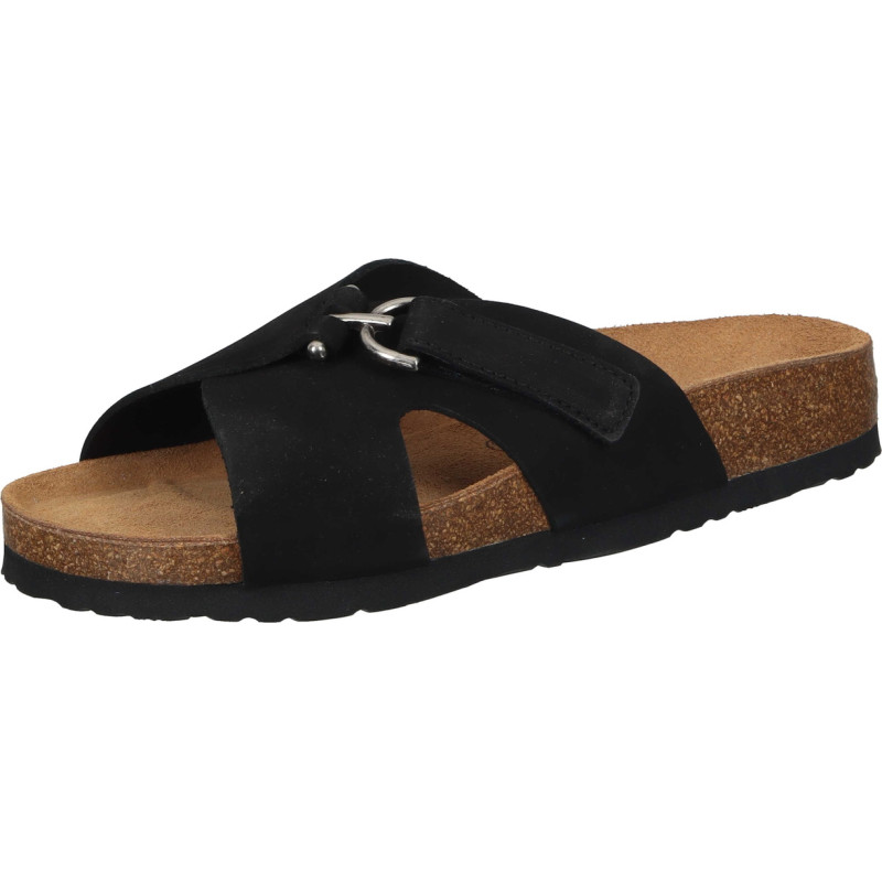 Modernaus dizaino, juodos spalvos moteriškos odinės įspirtukės.