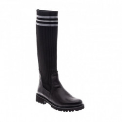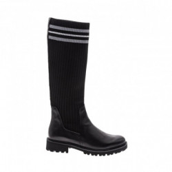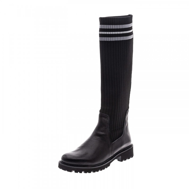 Modernaus stiliaus juodi moteriški ilgaauliai su filco pašiltinimu viduje.