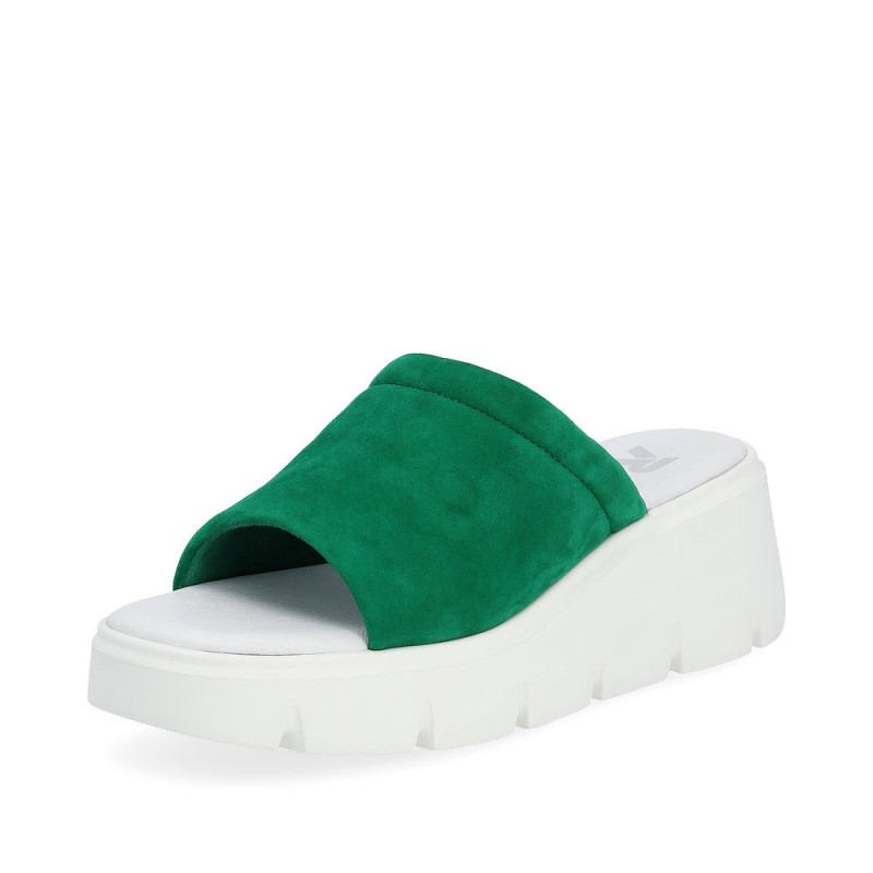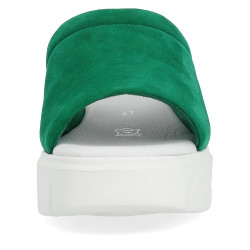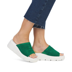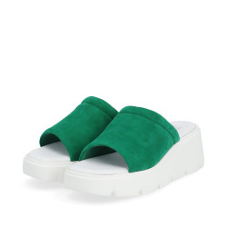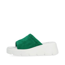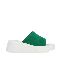 Modernaus dizaino, žalios spalvos moteriškos odinės įspirtukės.