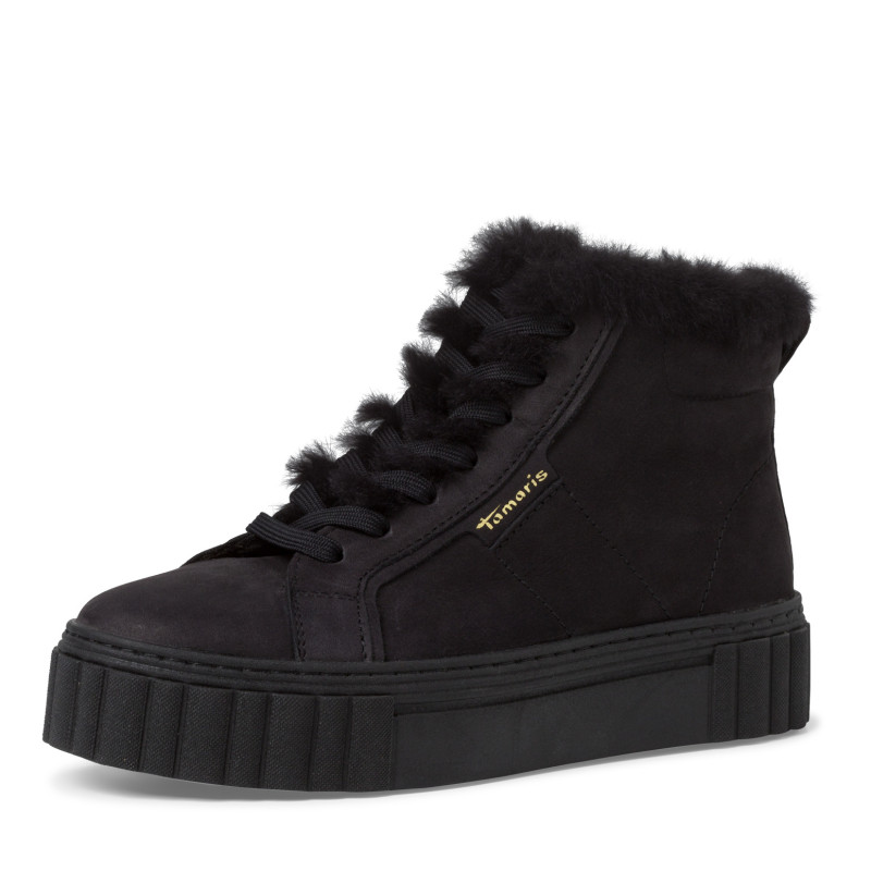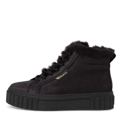 Juodos spalvos, modernaus stiliaus moteriški aulinukai su dirbtinio kailio pašiltinimu viduje.