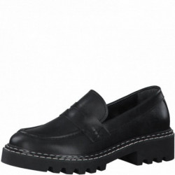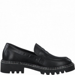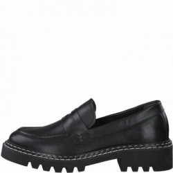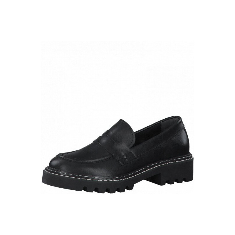 Juodos spalvos bateliai dekoruoti baltomis siūlėmis.