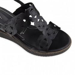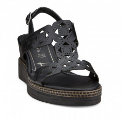 Juodos spalvos, moteriškos basutės su 7,5 cm aukščio platforma bei patogia bato lenktimi.
