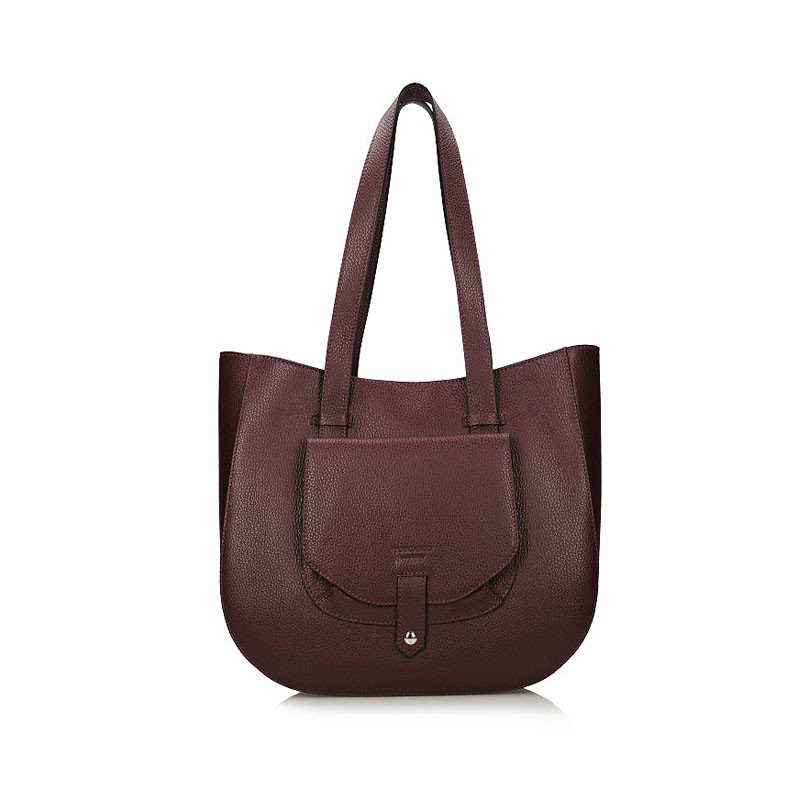 Rankinė pagaminta iš natūralios spalvos odos, turintis vieną pagrindinį skyrių, užsegamas užtrauktuku, viduje mažesnės kišenės.