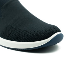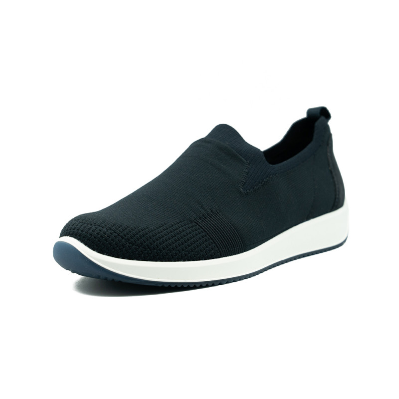Mėlynos spalvos, moteriški sportiniai tekstiliniai bateliai.