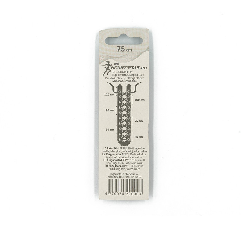 100% medvilnė, apvalūs, labai ploni, vaškuoti, juodos spalvos.