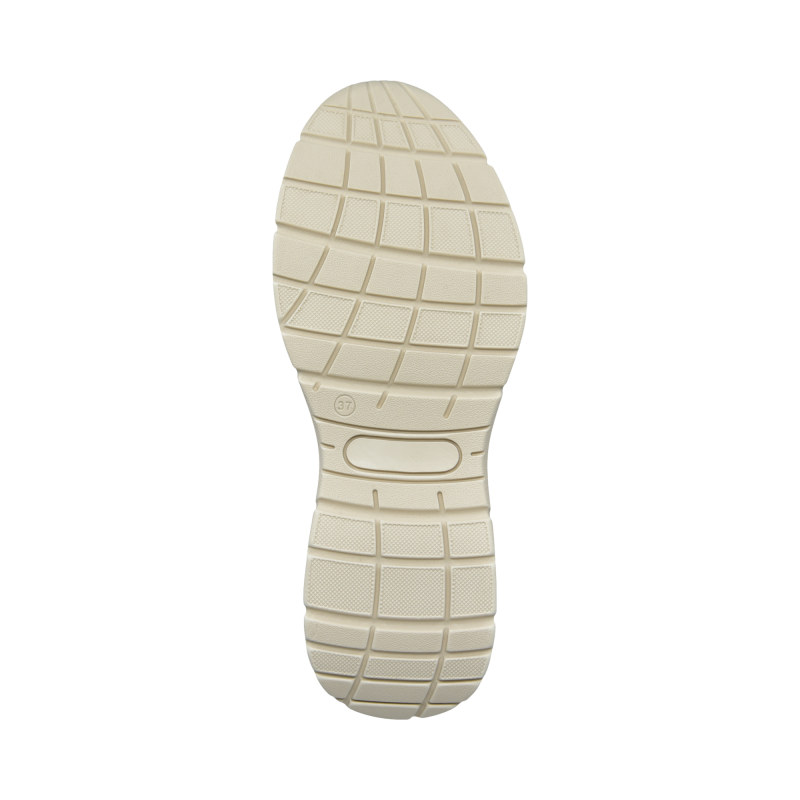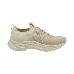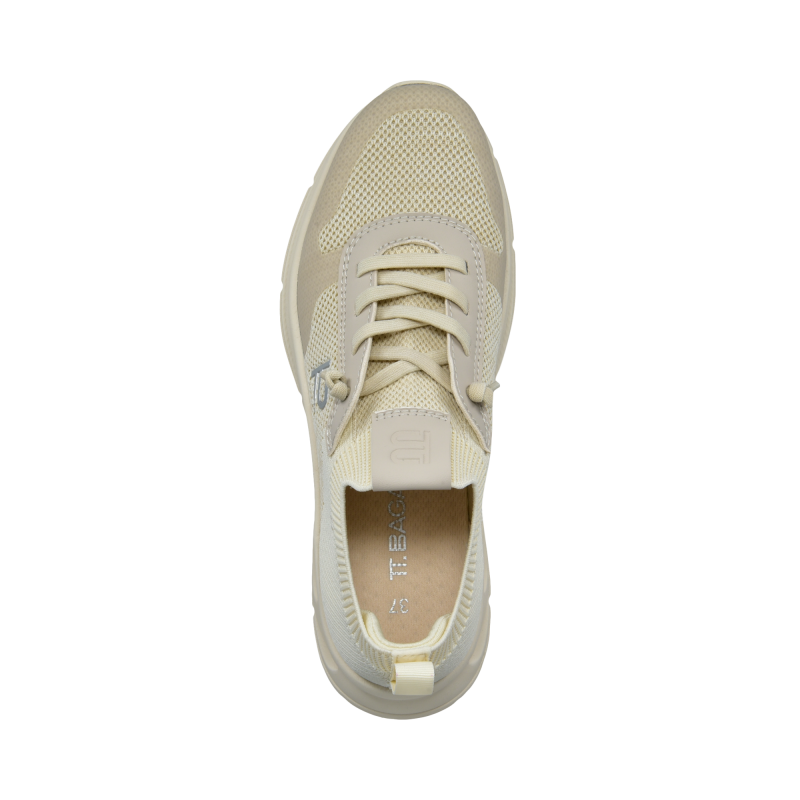 Smėlio spalvos, moteriški sportiniai bateliai.