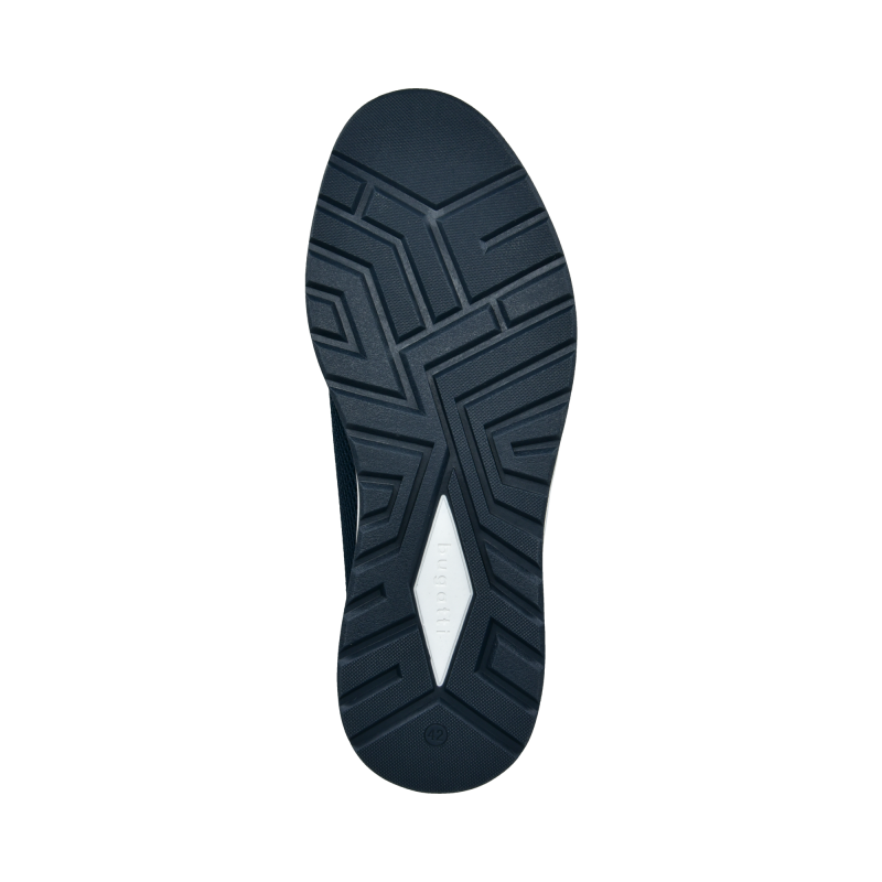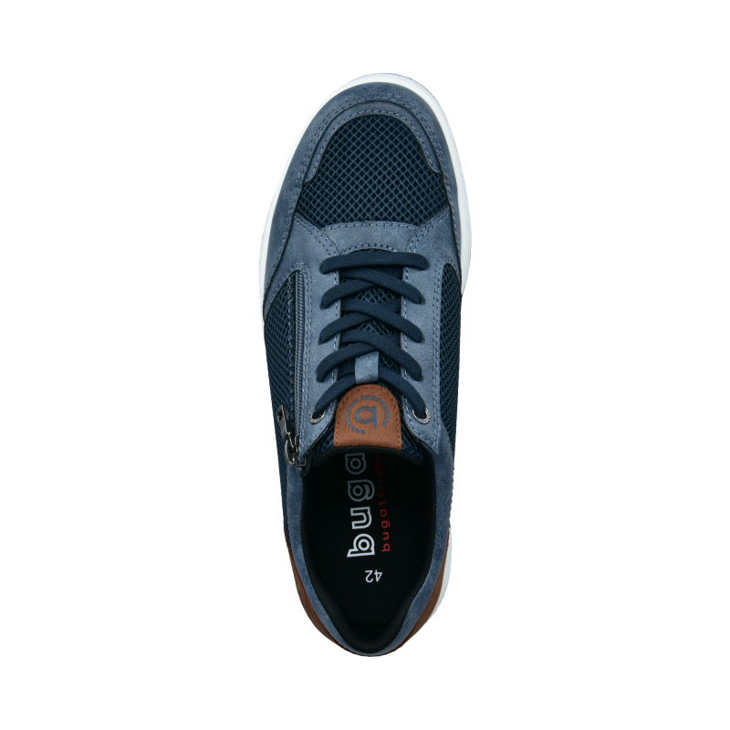 Mėlynos spalvos, tekstiliniai vyriški sportiniai bateliai.