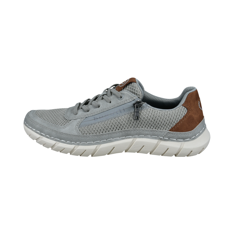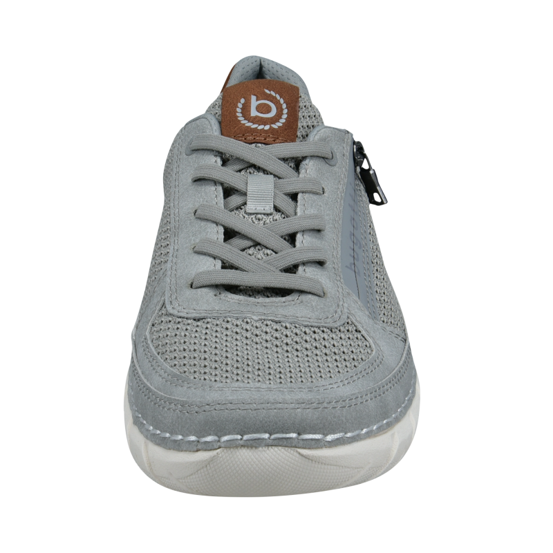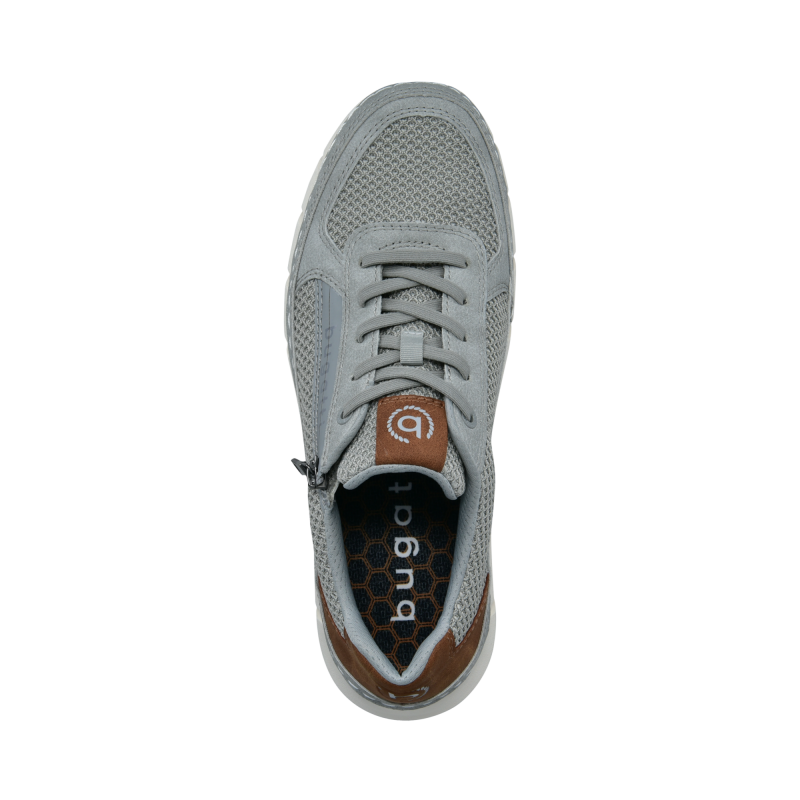 Pilkos spalvos, tekstiliniai vyriški sportiniai bateliai.