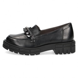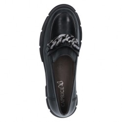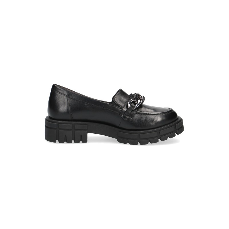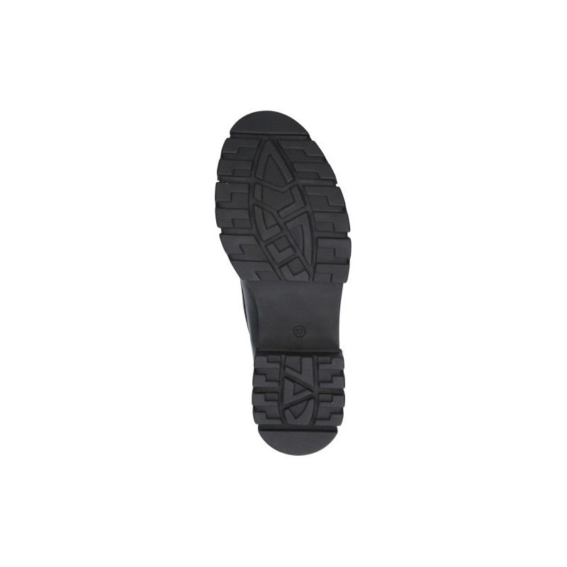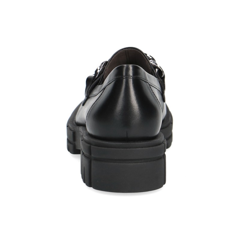 Juodos spalvos bateliai dekoruoti įvairiomis detalėmis ir unikaliu padu.