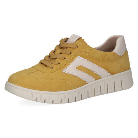 Sportiniai, moteriški geltonos spalvos odiniai bateliai.