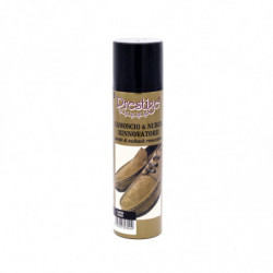 Speciali priežiūros priemonė PRESTIGE skirta efektyviai avalynės, rankinių, bei drabužių, pagamintų iš zomšo ir veliūro, apsaugai ir priežiūrai. Priemonė puikiai apsaugo avalynę bei kitus odos gaminius nuo drėgmės, lietaus, sniego ir purvo dėmių, atgaivina spalvą. Speciali gaminio formulė neleidžia į odą prasiskverbti vandeniui, purvui ir druskoms, bet leidžia odai kvėpuoti. Prieš naudojant nuvalyti paviršių. Purkšti 20 cm atstumu, tolygiu sluoksniu.