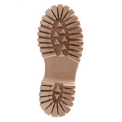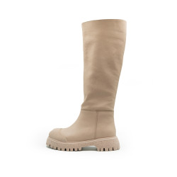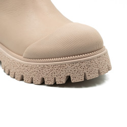 Elegancija pulsuojantys smėlio spalvos moteriški ilgaauliai su dirbtinio kailio pašiltinimu bato pade.