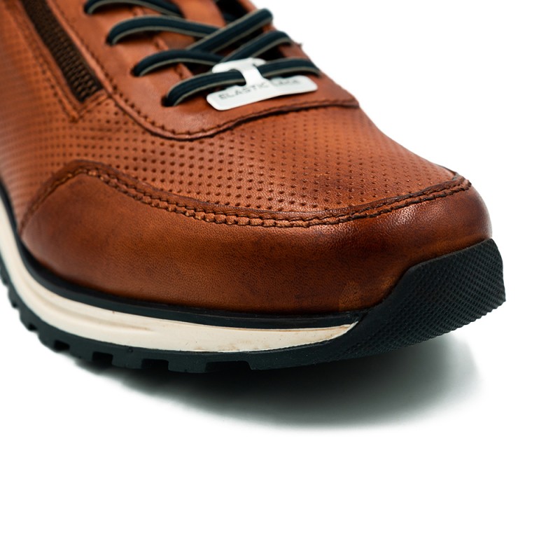 Rudos spalvos, odiniai vyriški sportiniai bateliai.