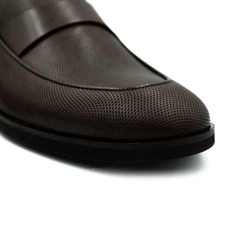 Vyriškas, pagamintas iš natūralios odos, rudos spalvos, klasikinio tipo batelis. Bateliai tinkantys avėti prie kostiumų įvairioms progoms. Bateliai su patogiu 2 cm kulnu.