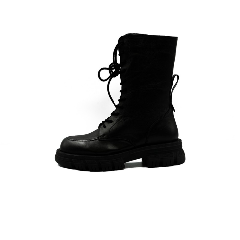 Juodos spalvos ilgaauliai su komfortiško aukščio - 4 cm padu.