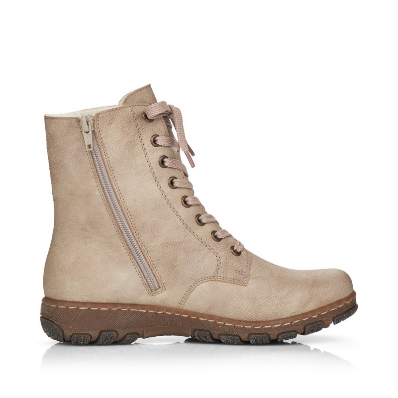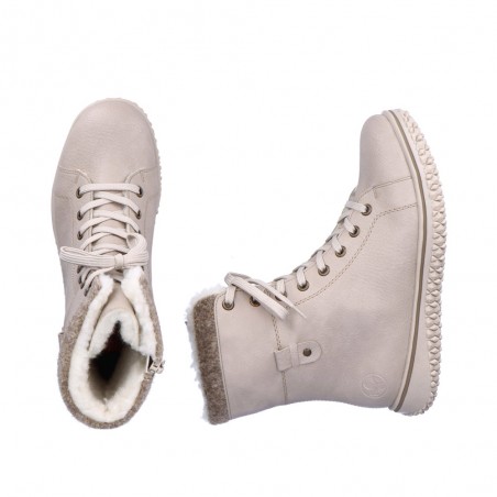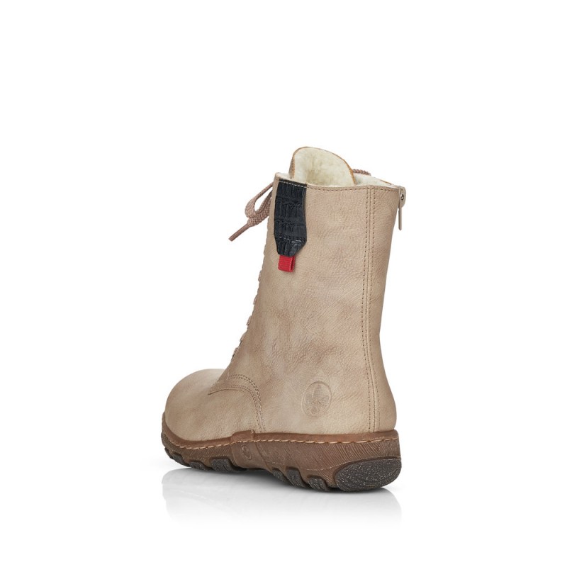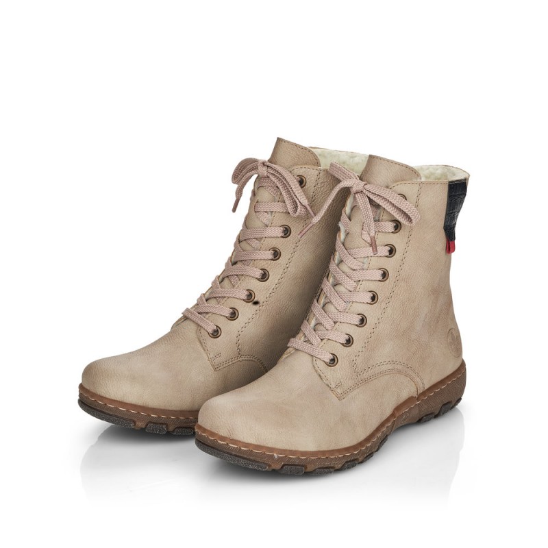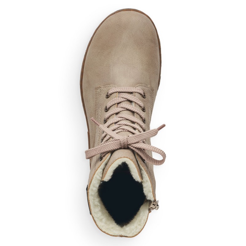 Smėlio spalvos, modernaus stiliaus moteriški aulinukai su dirbtinio kailio pašiltinimu viduje.