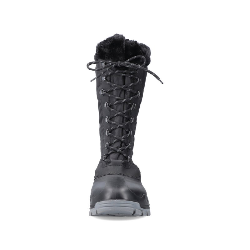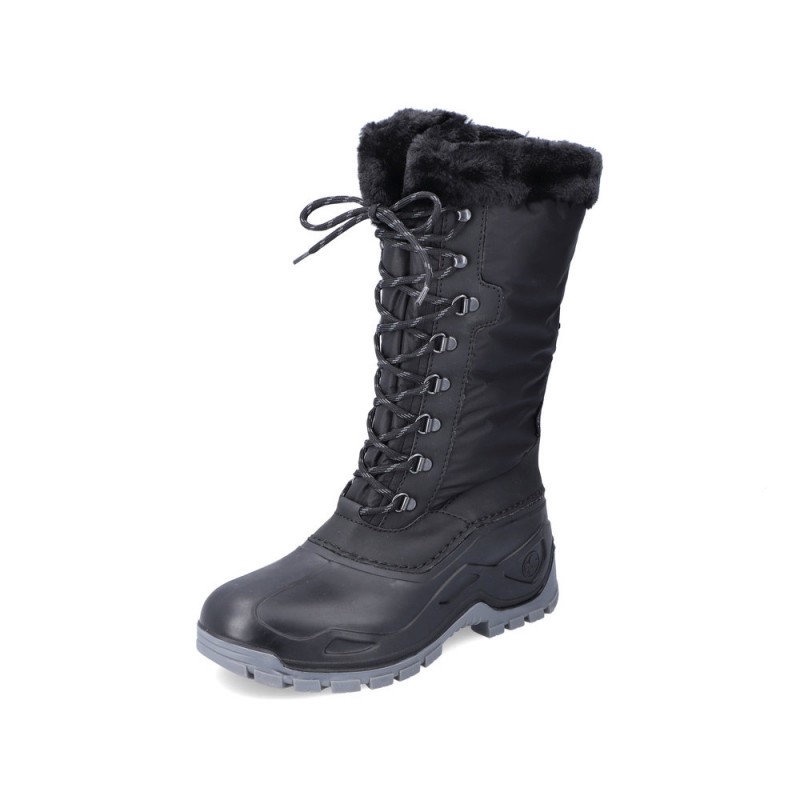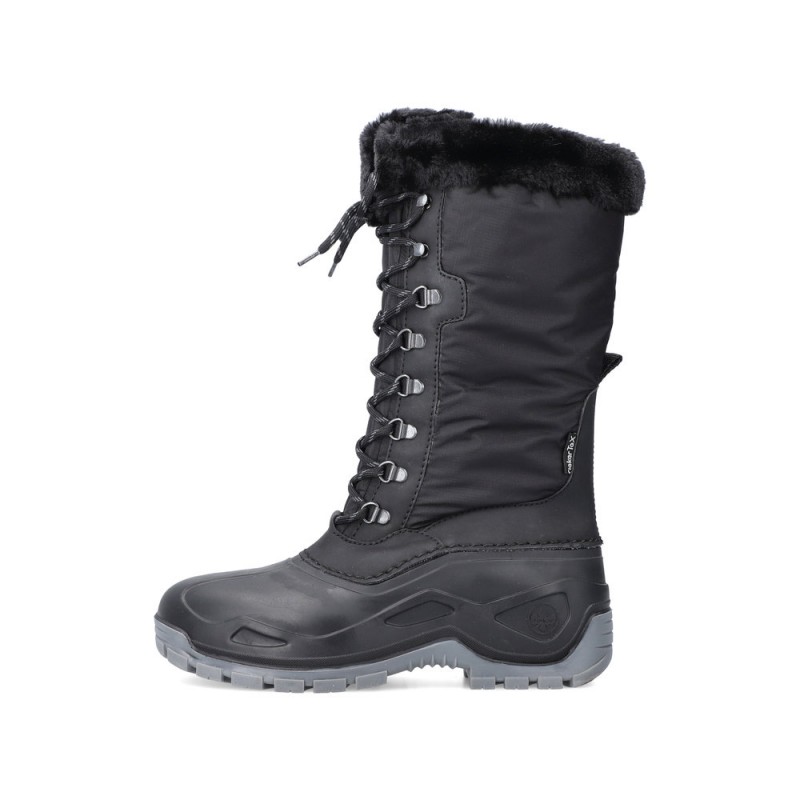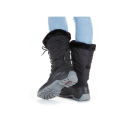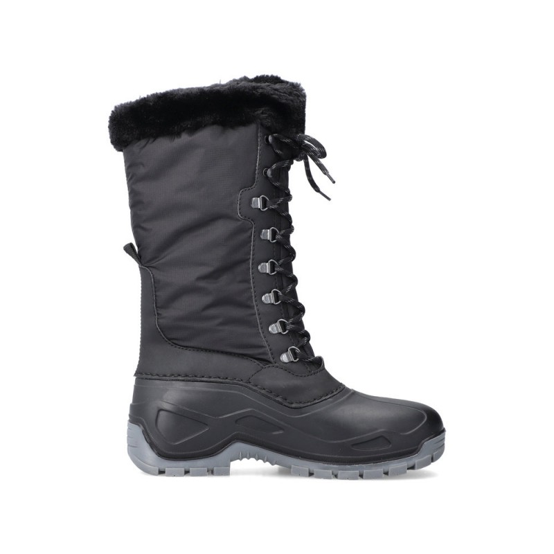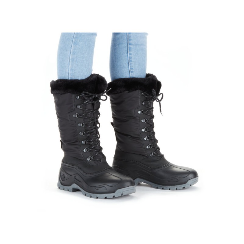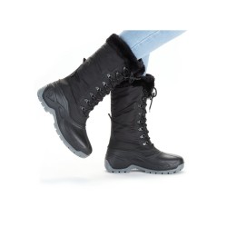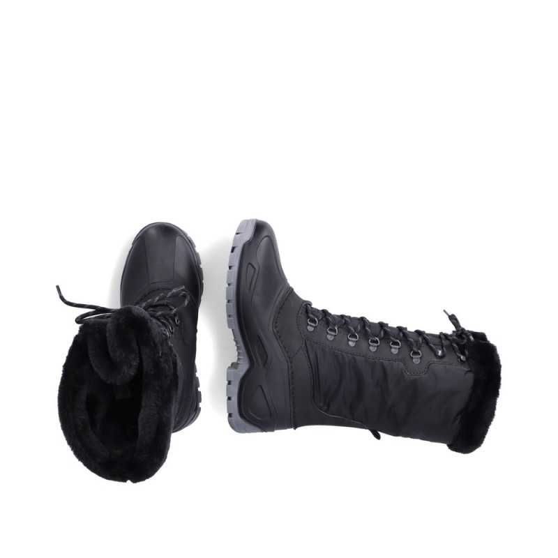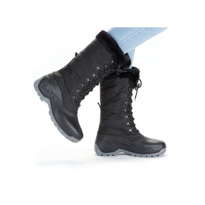Juodos spalvos modernaus stiliaus moteriški ilgaauliai su dirbtinio kailio pašiltinimu viduje.