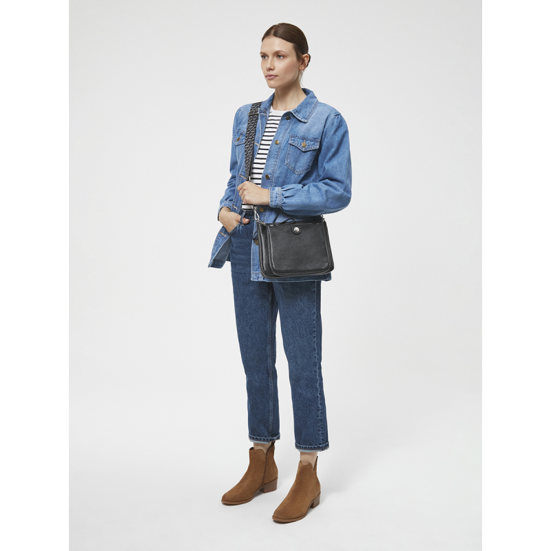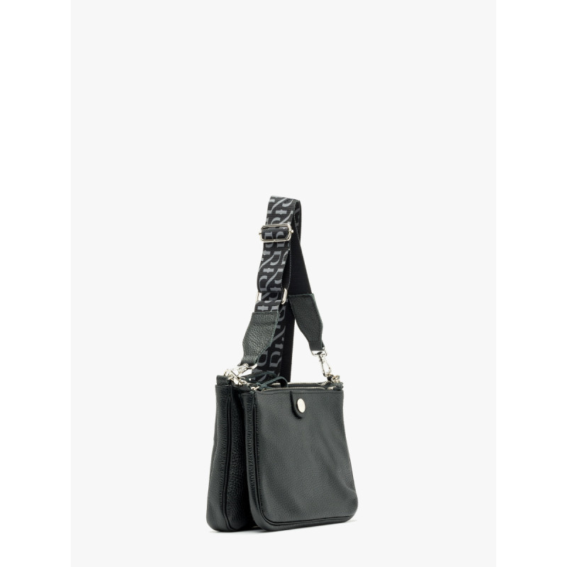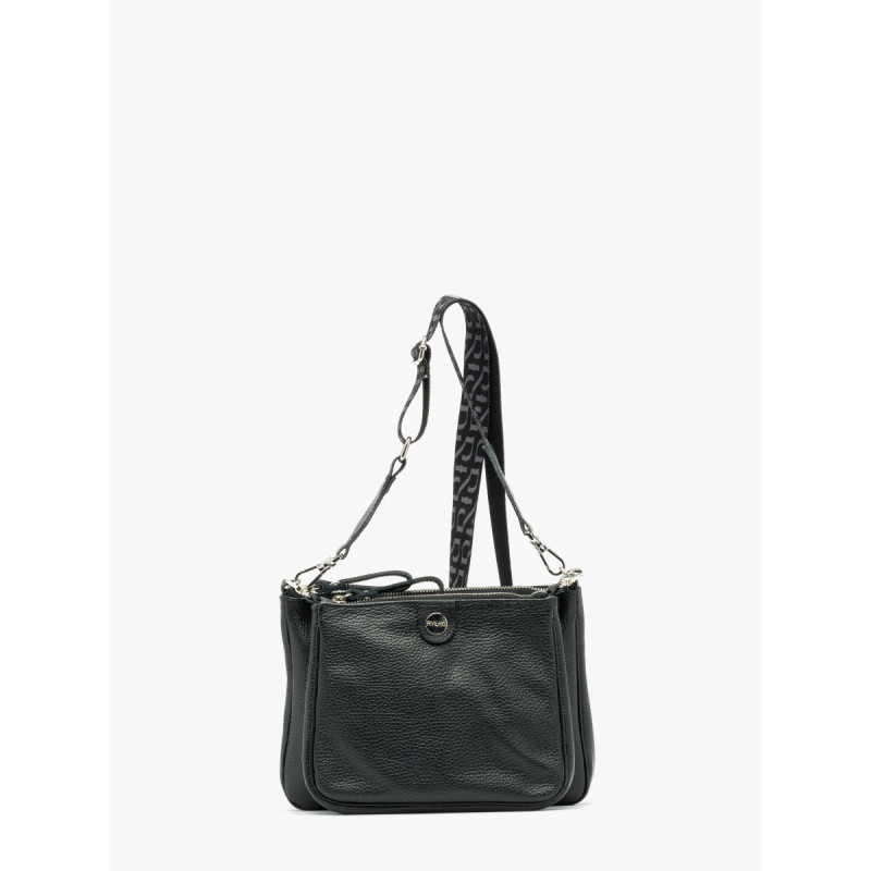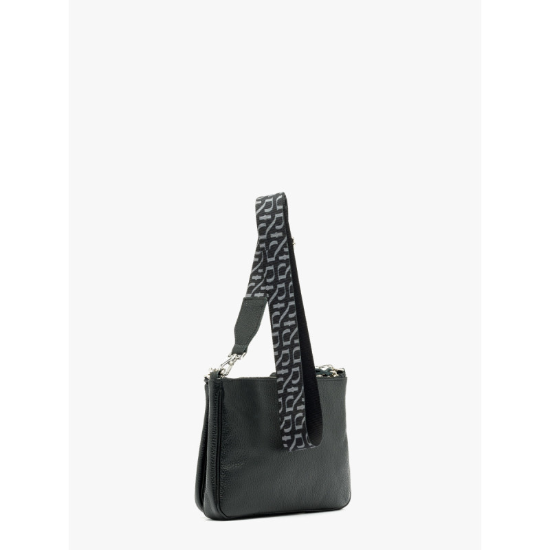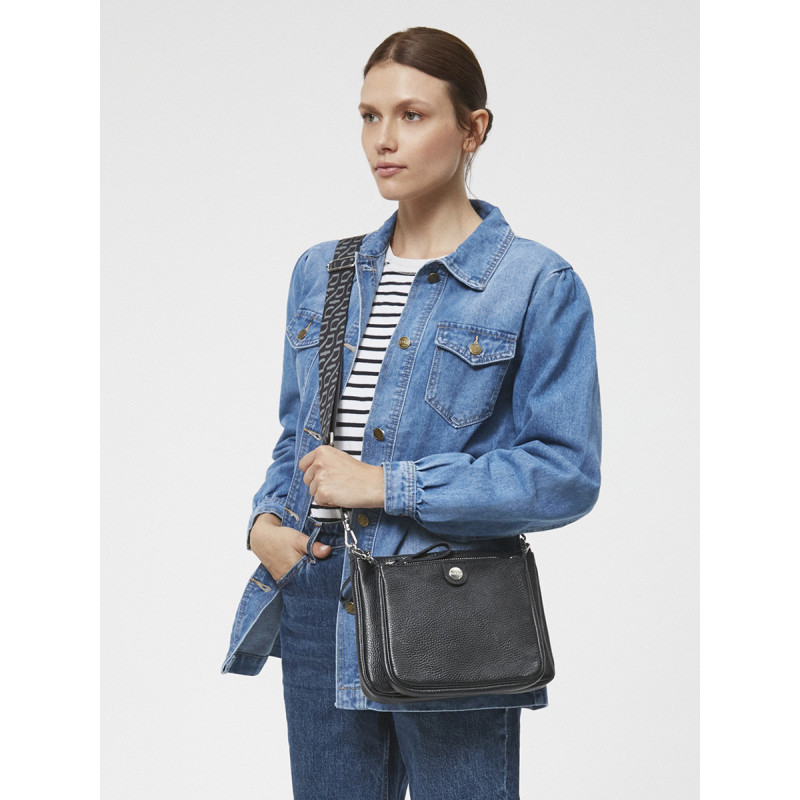 Užsegimas užtrauktuku. Rankinė maža, netelpa A4. Modelyje yra 1 išorinė kišenė, 2 vidinės kišenės ir reguliuojamas 135 cm ilgio dirželis. Aukštis: 21 cm Plotis: 28 cm Gylis: 5 cm Jame yra sidabro dekoratyvinių elementų.