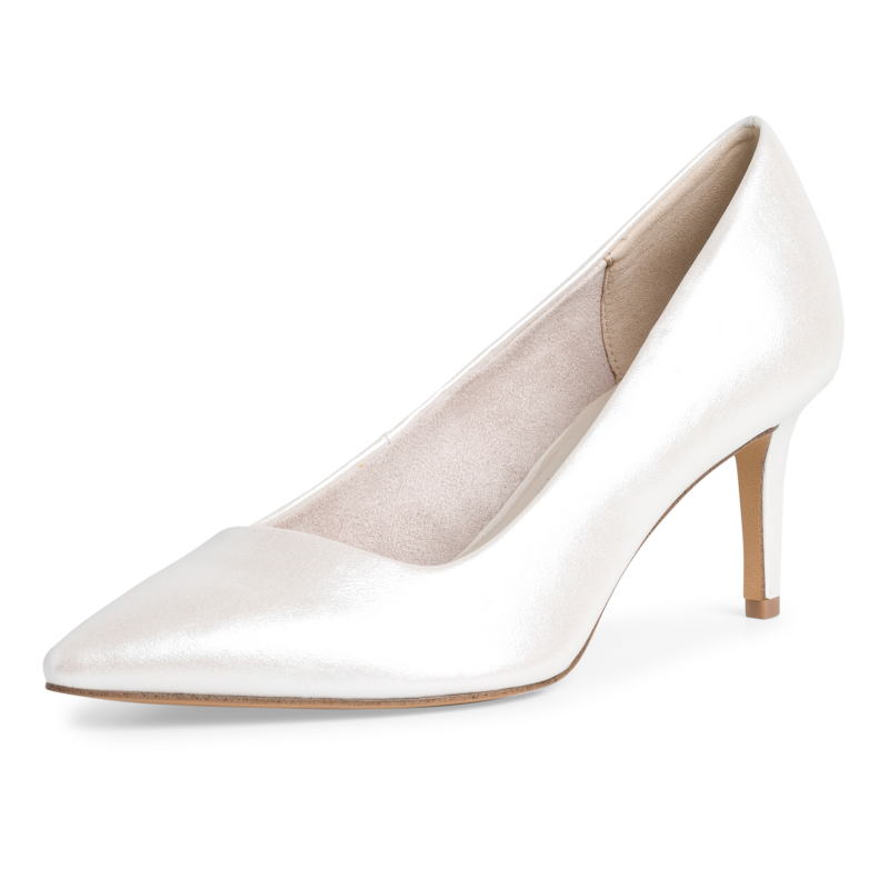 Eko odos, baltos spalvos moteriški aukštakulniai bateliai.