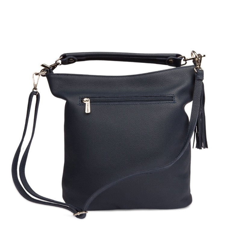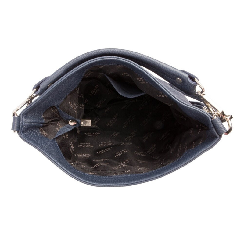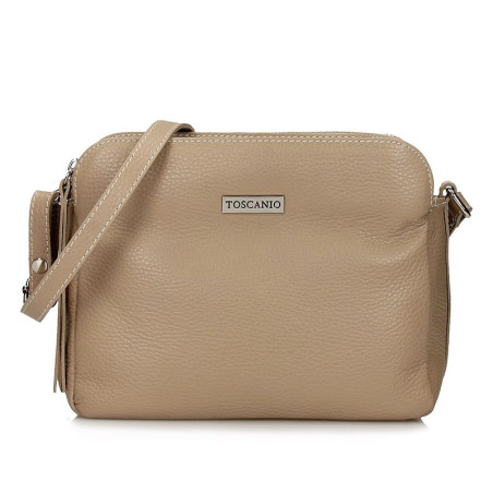 Klasikinė rankinė iš itališkos, natūralios odos. Rankinė gali būti dėvimas rankoje arba ant peties, keičiamo diržo dėka jis yra trumpas ir ilgas. Rankinė turi vieną pagrindinį skyrių, kuriame yra du papildomi skyriai, vienas su užraktu, skirtas, pavyzdžiui, smulkiems daiktams paslėpti, o kitas - telefonui. Rankinės gale yra papildomas skyrius su užtrauktuku. Rankinė papuošta dekoratyviniu kutu. Rankine užpildytas pamušalu su TOSCANIO logotipu.