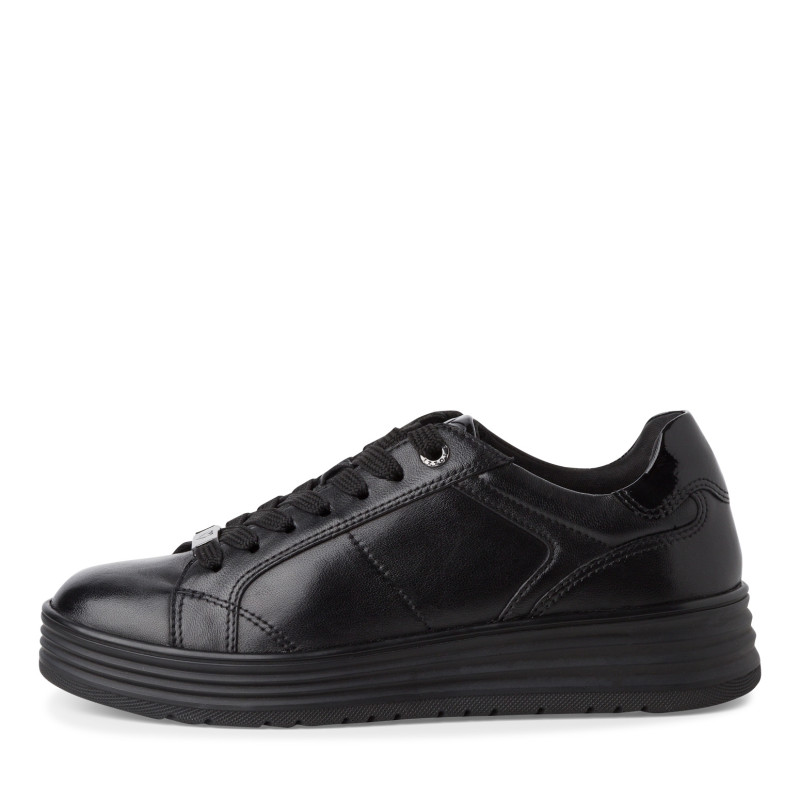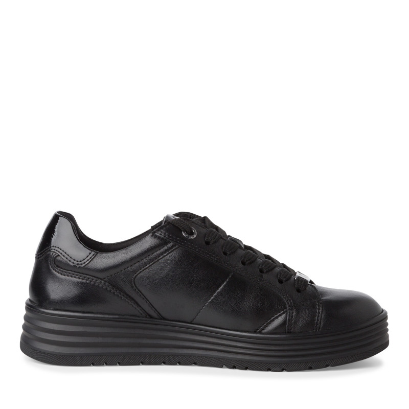 Juodos spalvos, moteriški sportiniai bateliai su patogiu 4,5 cm padu.