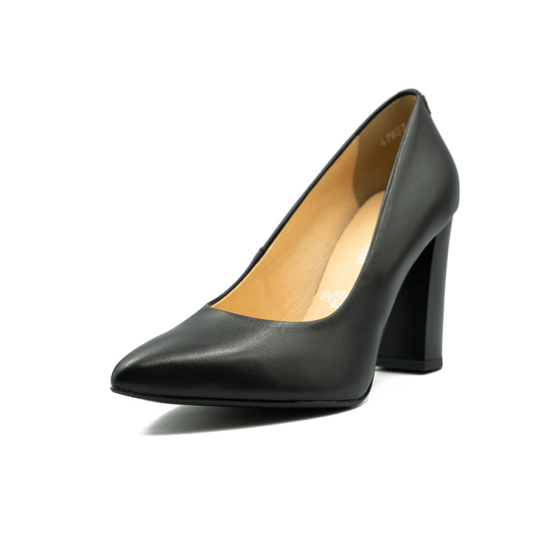 Juodos spalvos, odiniai bateliai su komfortiško - 8,5 cm. aukščio kulnu.