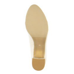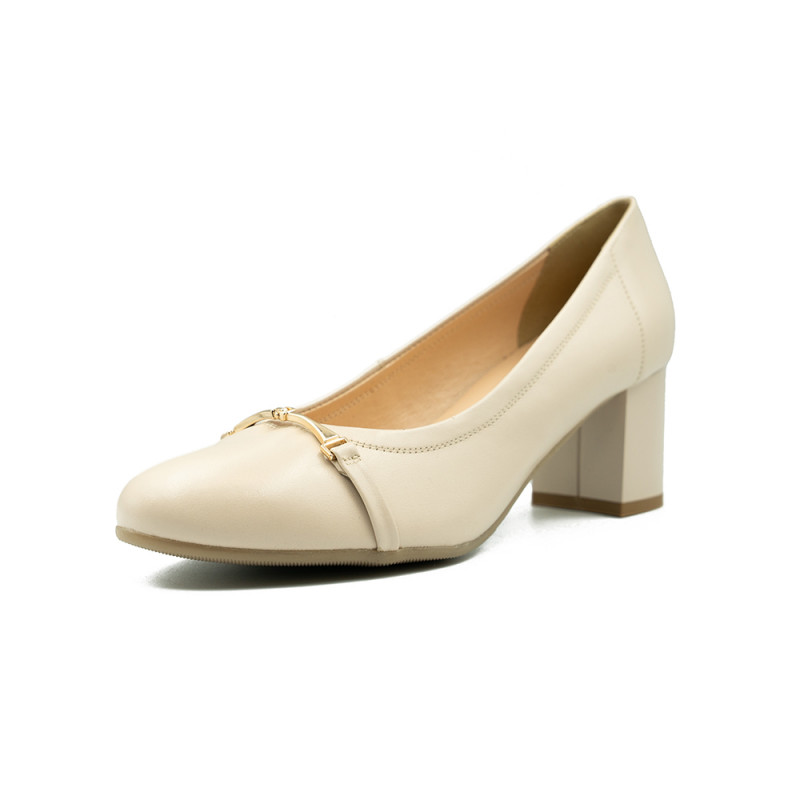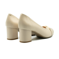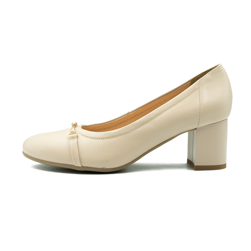 Smėlio spalvos, odiniai bateliai komfortiško - 5 cm. aukščio kulnu bei patogia bato lenktimi.