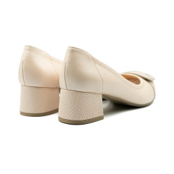 Smėlio spalvos, odiniai bateliai komfortiško - 4,5 cm. aukščio kulnu bei patogia bato lenktimi.