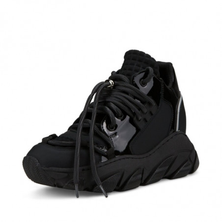 Juodos spalvos modernaus stiliaus moteriški sportiniai aulinukai.