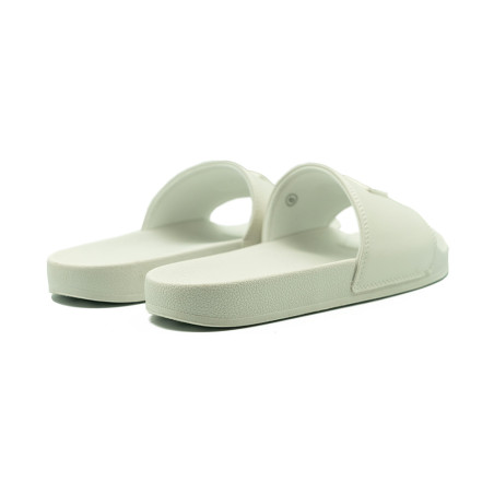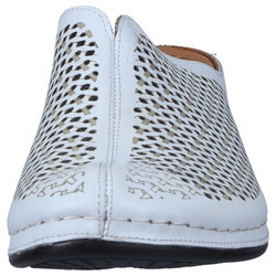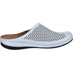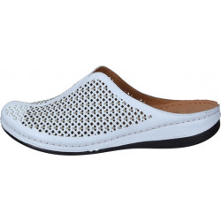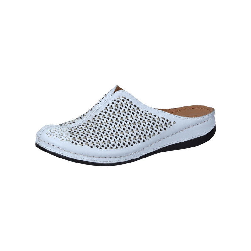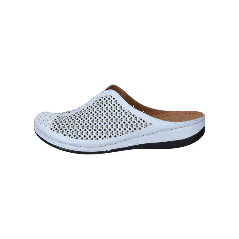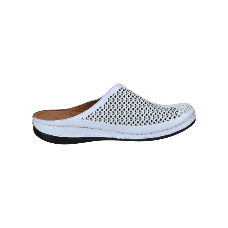Modernaus dizaino baltos spalvos moteriškos odinės įspirtukės.