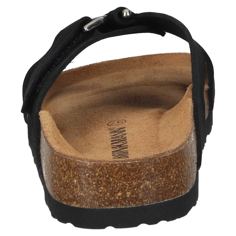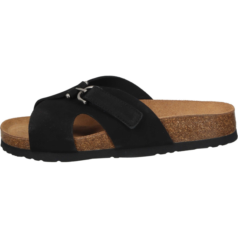 Modernaus dizaino, juodos spalvos moteriškos odinės įspirtukės.