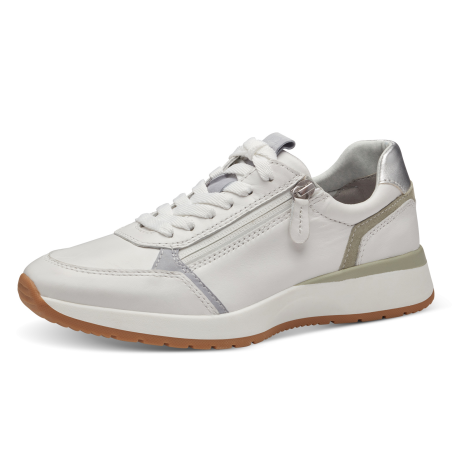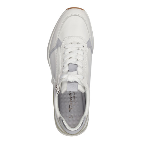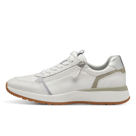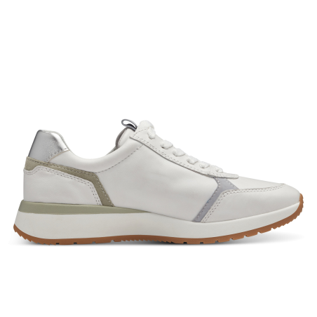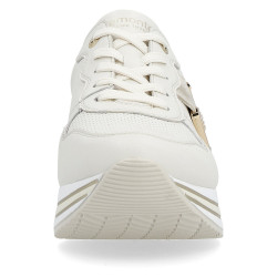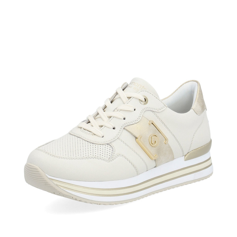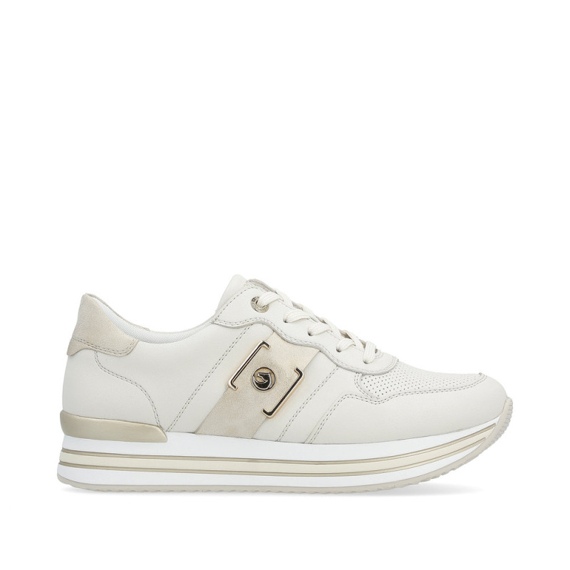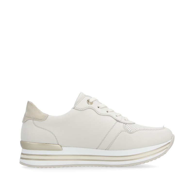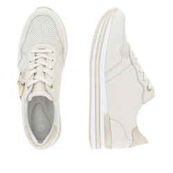 Smėlio spalvos spalvos, moteriški sportiniai odiniai bateliai.