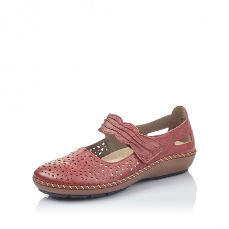 Moteriški žemapadžiai bateliai, pagaminti iš natūralios odos, raudonos spalvos.