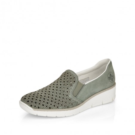 Chaki spalvos bateliai perforuoti smulkiomis skylutėmis.
