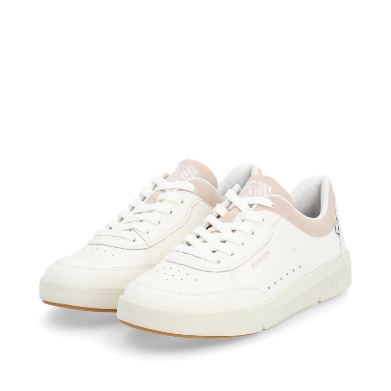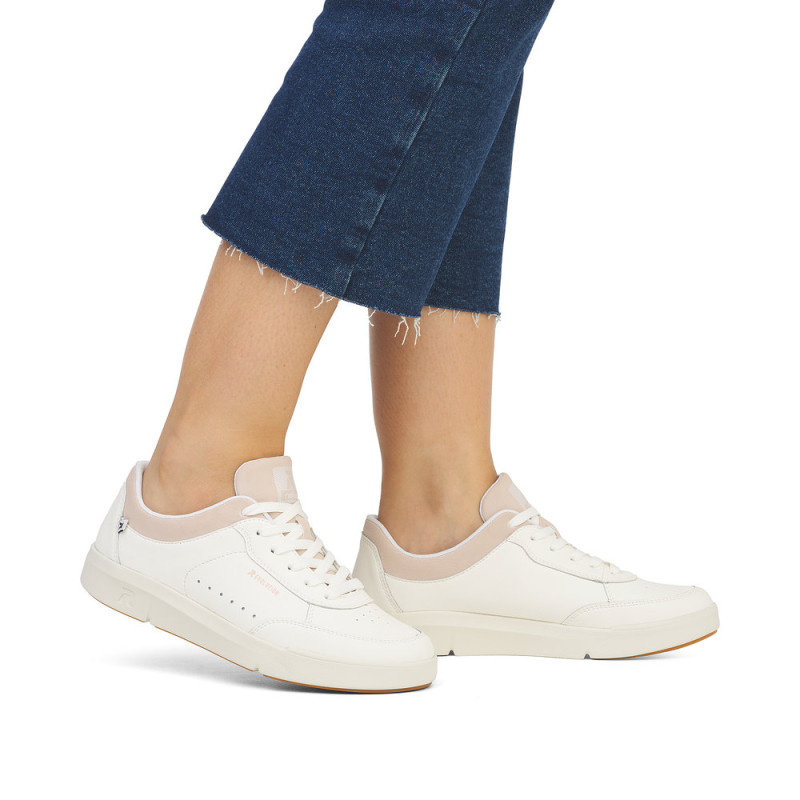 Baltos spalvos, moteriški sportiniai bateliai su 3,5 cm padu.