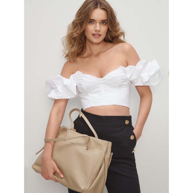 Užsegimas užtrauktuku. Didelis krepšys, tinka A4 formatui. Modelyje yra 3 vidinės kišenės, 1 išorinė kišenė, 1 skyrius, patogi 22 cm aukščio rankena ir 130 cm ilgio reguliuojamas dirželis.