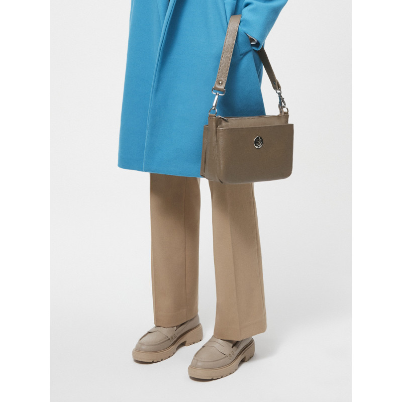 Modelis su 2 išorinėmis kišenėmis, 1 vidine kišene, rankena 30 cm ir reguliuojamu diržu, ilgis 115 cm.