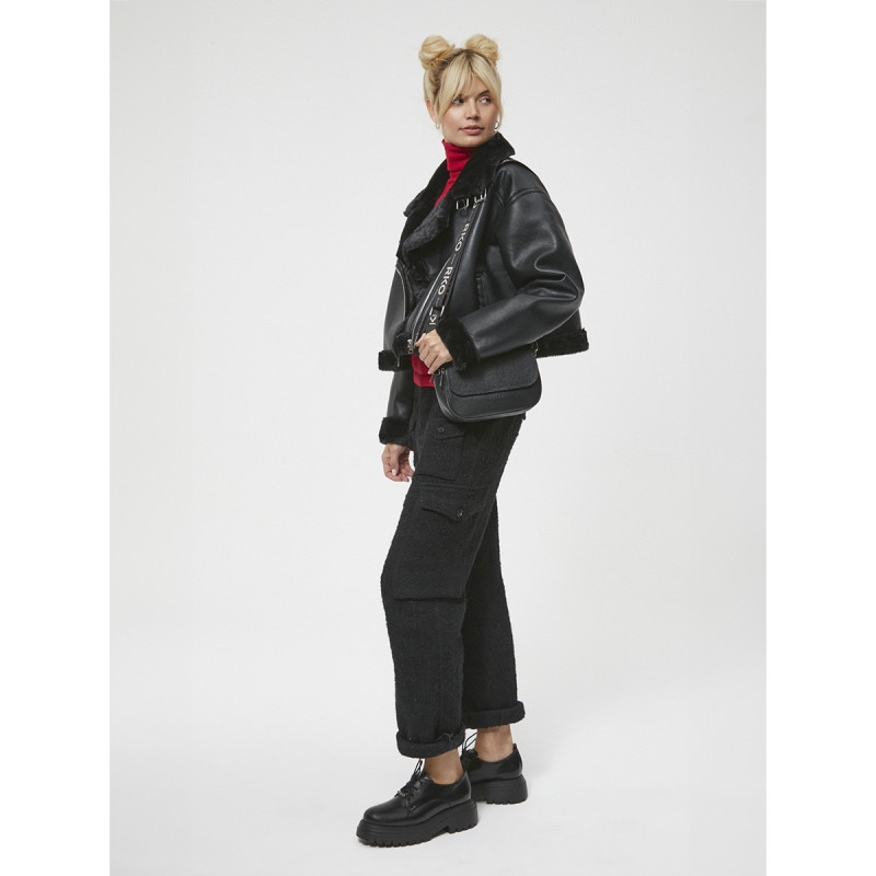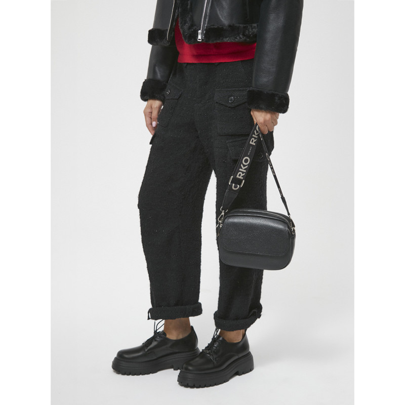 Užsegimas užtrauktuku. Mažas krepšys, netelpa A4. Modelyje yra 1 išorinė kišenė, 1 vidinė kišenė ir reguliuojamas 135 cm ilgio dirželis.