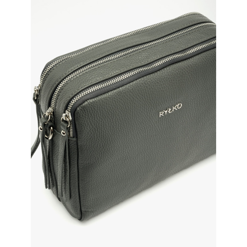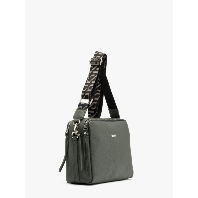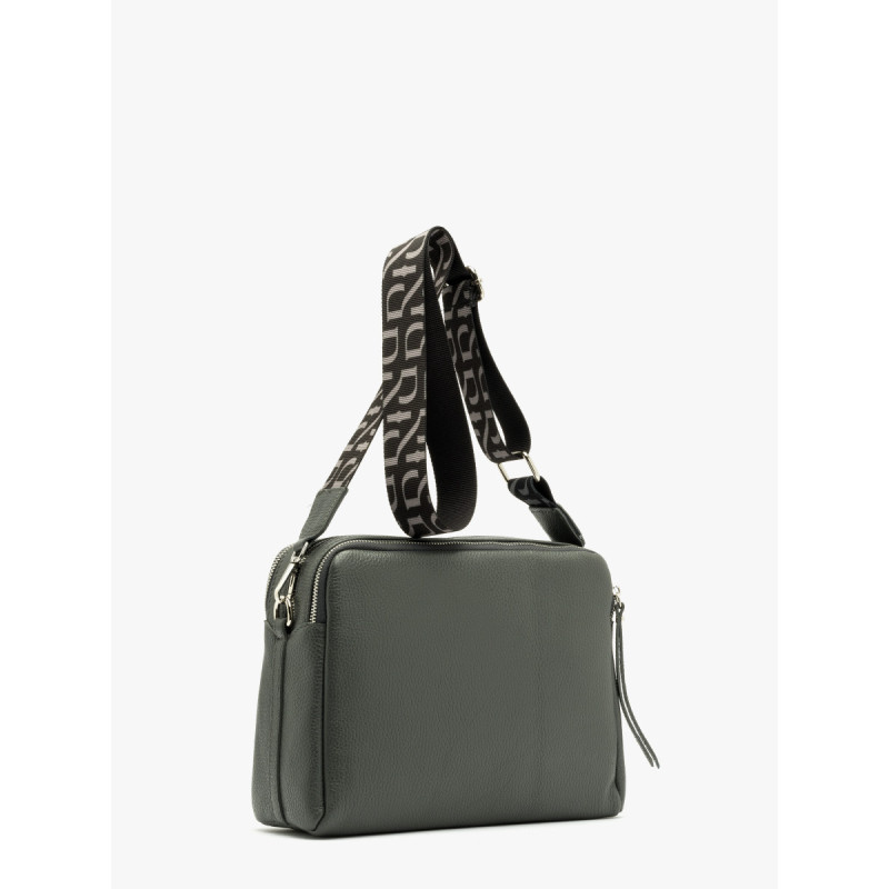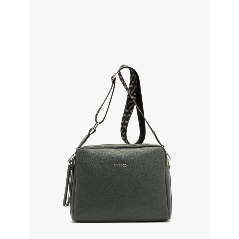 Užsegimas užtrauktuku. Vidutinio dydžio rankinė, kurioje netelpa A4 formatu. Modelyje yra 2 išorinės kišenės, 2 vidinės kišenės, 2 skyriai ir reguliuojamas 130 cm ilgio dirželis. Aukštis: 25 cm Plotis: 28 cm Gylis: 12 cm Jame yra dekoratyviniai sidabro spalvos elementai.