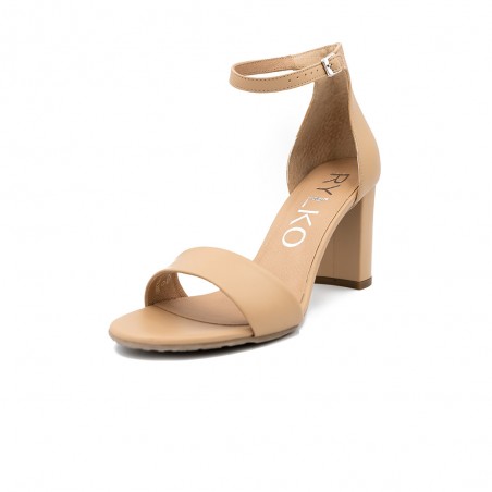 Smėlio spalvos, moteriškos basutės su 8 cm. storu kulnu, bei patogia bato lenktimi.