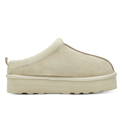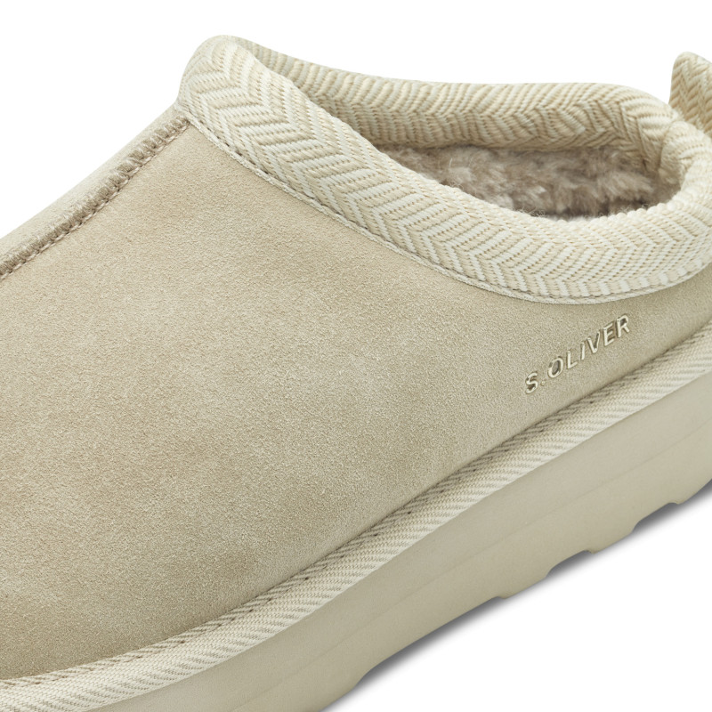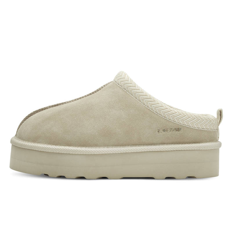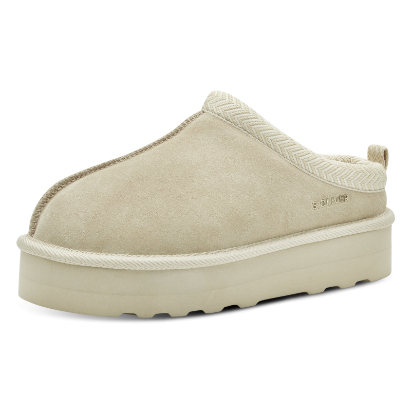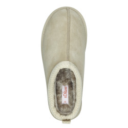 Smėlio spalvos, modernaus stiliaus moteriškos įspirtukės su dirbtinio kailio pašiltinimu viduje.