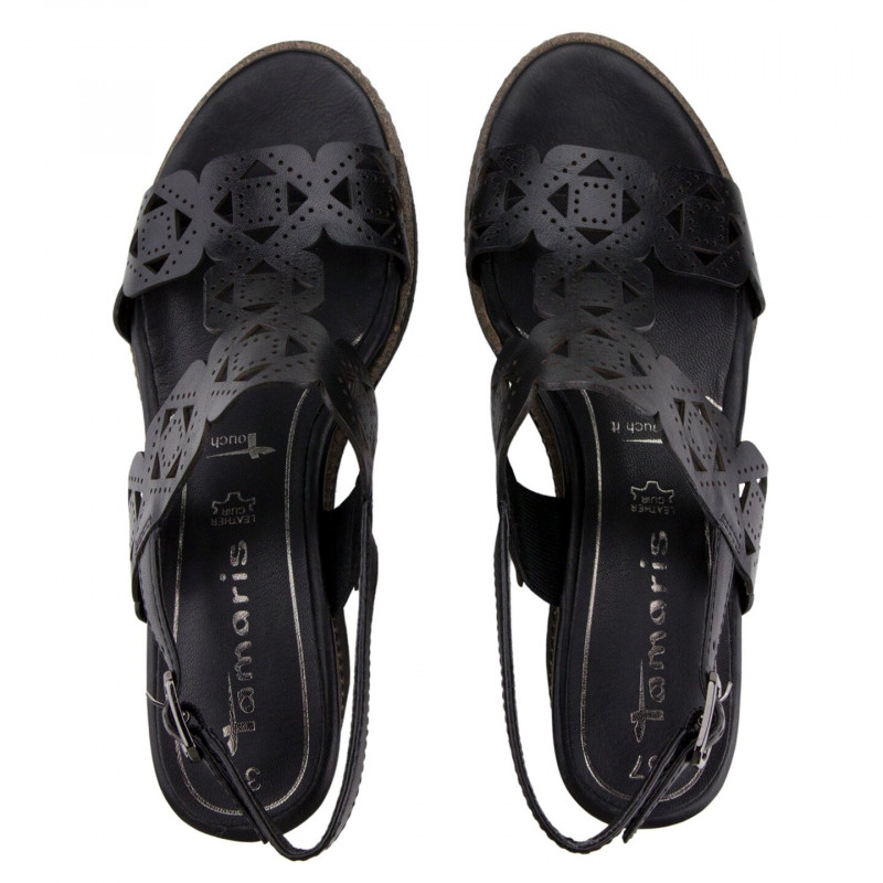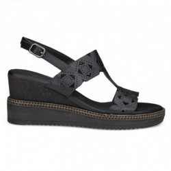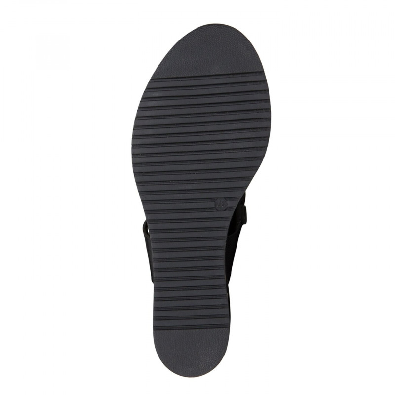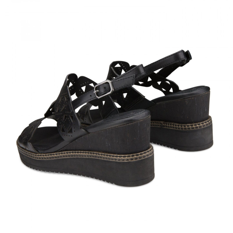 Juodos spalvos, moteriškos basutės su 7,5 cm aukščio platforma bei patogia bato lenktimi.