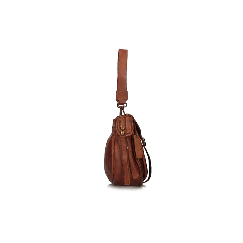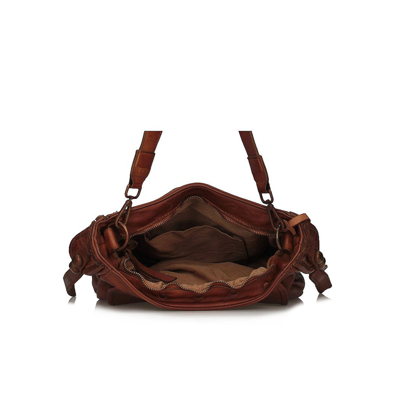 Talpi rankinė iš vientisos itališkos natūralios odos, su vienu pagrindiniu skyriumi, uždarytu atvartu su segtuku ir užtrauktuku, viduje yra dvi mažesnės kišenės.