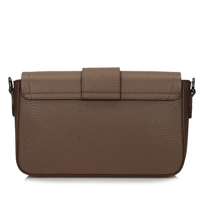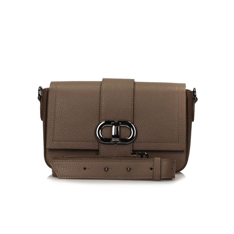 Rankinė pagaminta iš natūralios itališkos odos, su vienu pagrindiniu skyriumi, uždarytu atvartu su užtrauktuku ir užtrauktuku, su viena mažesne kišene viduje. Rankinė kabo ant reguliuojamo dirželio. Rankinė su – dekoratyvine sagtimi.