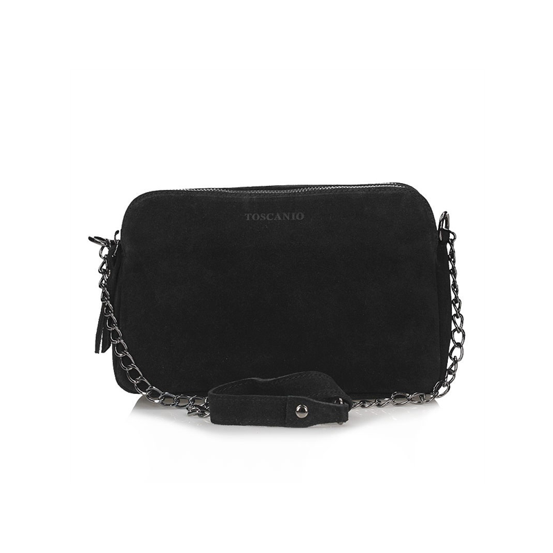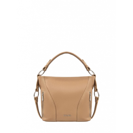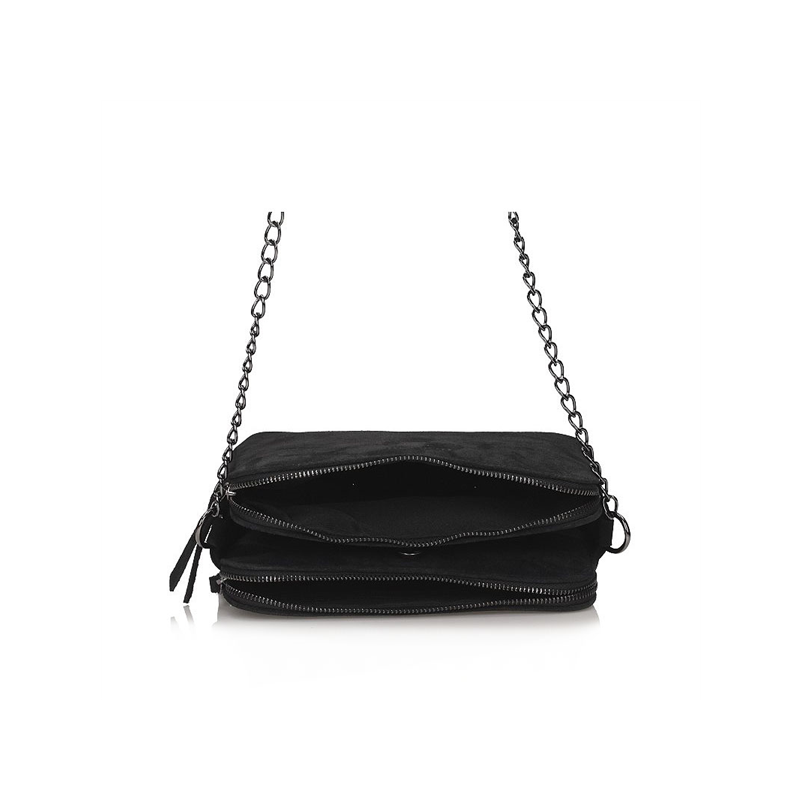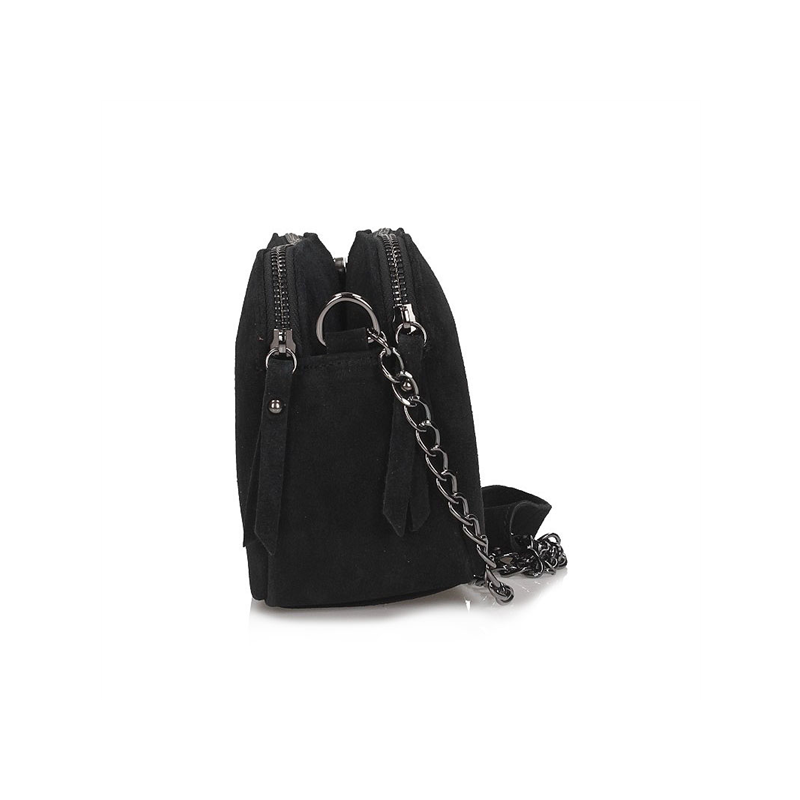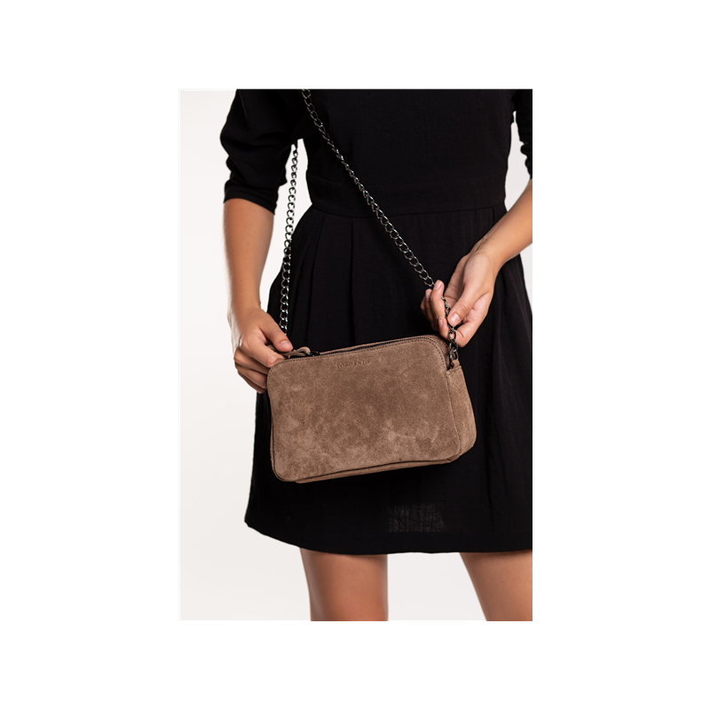 Elegantiška rankinė iš natūralios, zomšos, itališkos odos. Rankinė padalinta į tris pagrindinius skyrius, iš kurių du su užtrauktuku ir vienas su segtuku. Rankinės apačia sutvirtinta. Rankinė pakabinama ant grandinėlės su zomšiniu pečių įdėklu. Viename iš skyrių yra mažesnis skyrius.